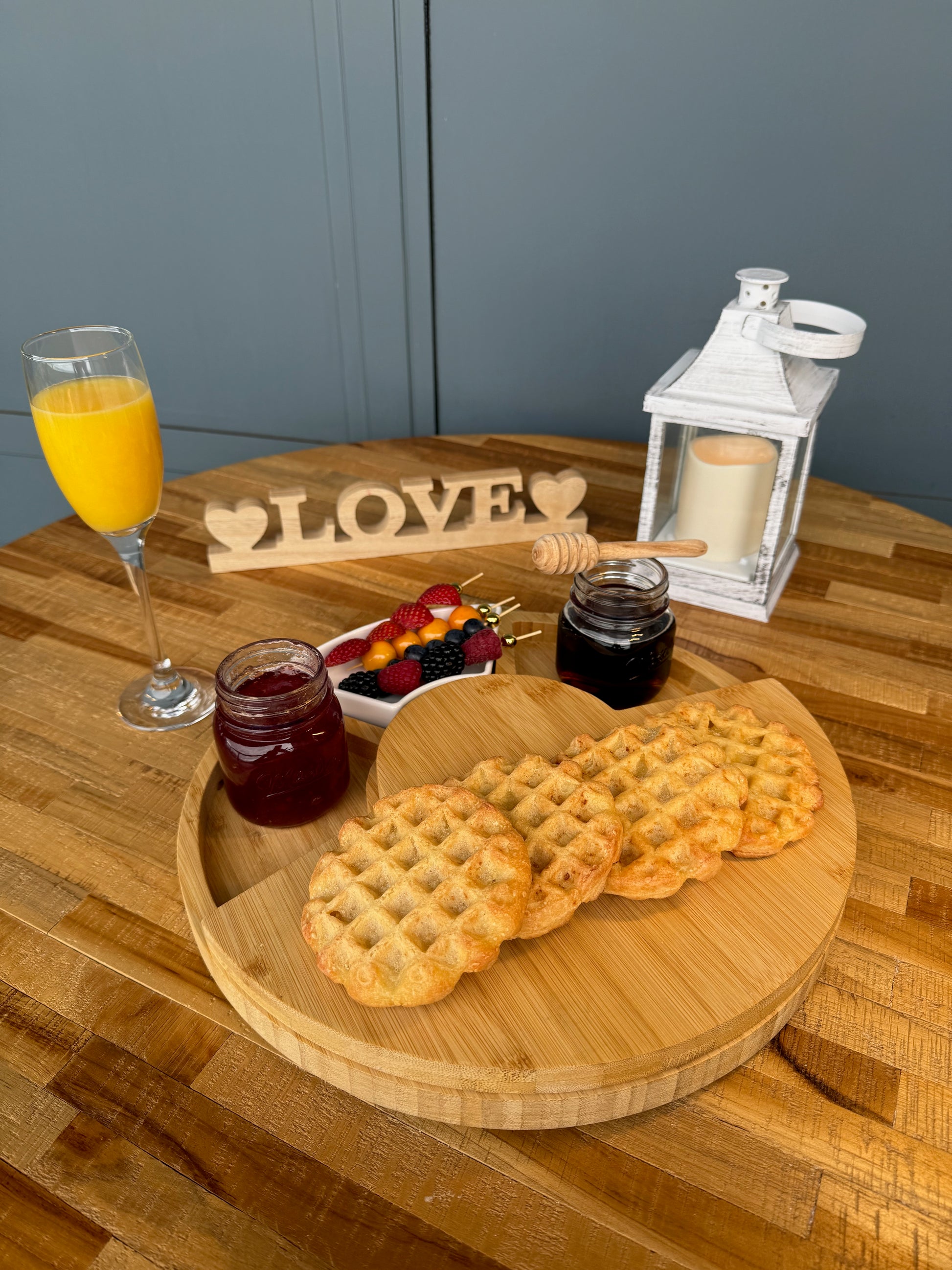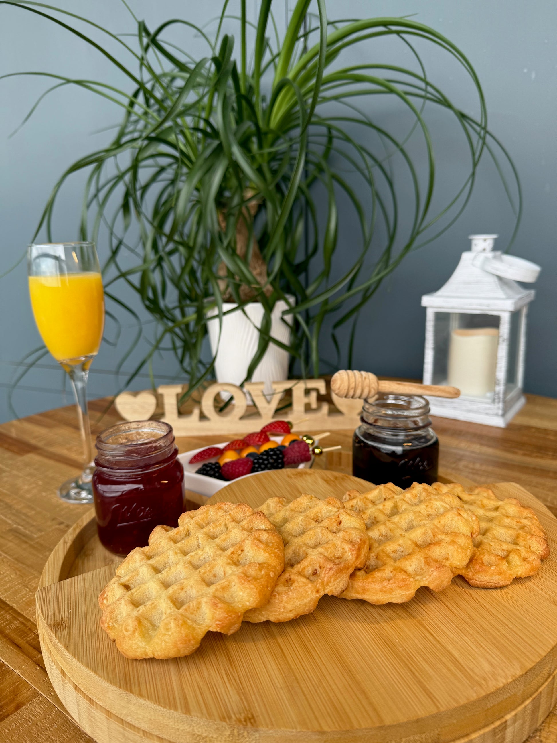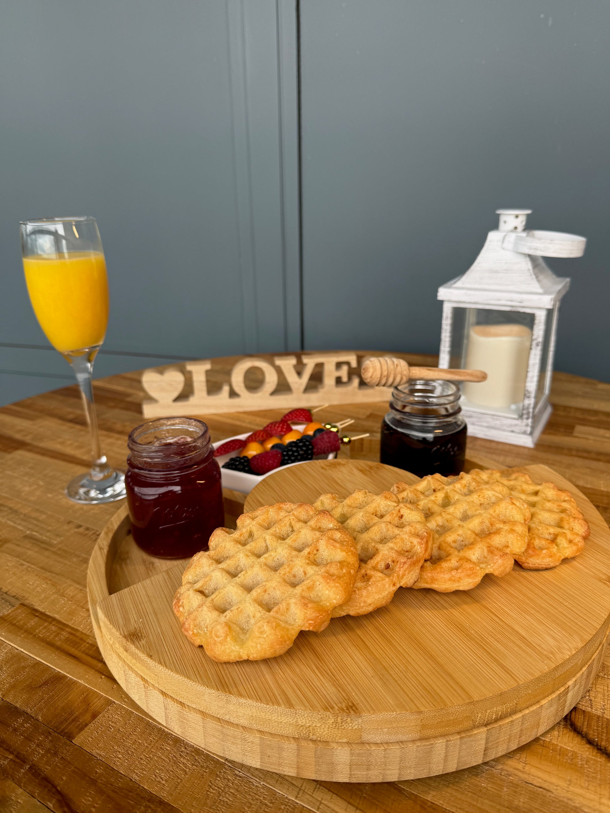 Say hello to Wafflebono – our playful take on the traditional Colombian Pandebono, shaped like a waffle and made to bake fresh in your own oven.